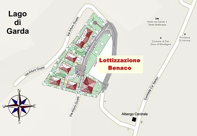 Rendering del Progetto Benaco a S. Zeno di MontagnaL’intervento consiste nella realizzazione di un nuovo complesso residenziale costituito da tre lotti indipendenti, ubicato in Via A. Giusto nel Comune di San Zeno di Montagna, piacevole località di villeggiatura e turismo a 15 minuti dal lago di Garda.